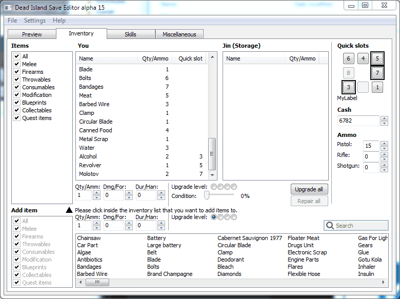 - Quick slots are implemented