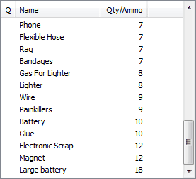 Update 2: Sorting is now pretty functional. Here you can see that the items are sorted alphabetically (and reversed) and by quantity/ammo. :D