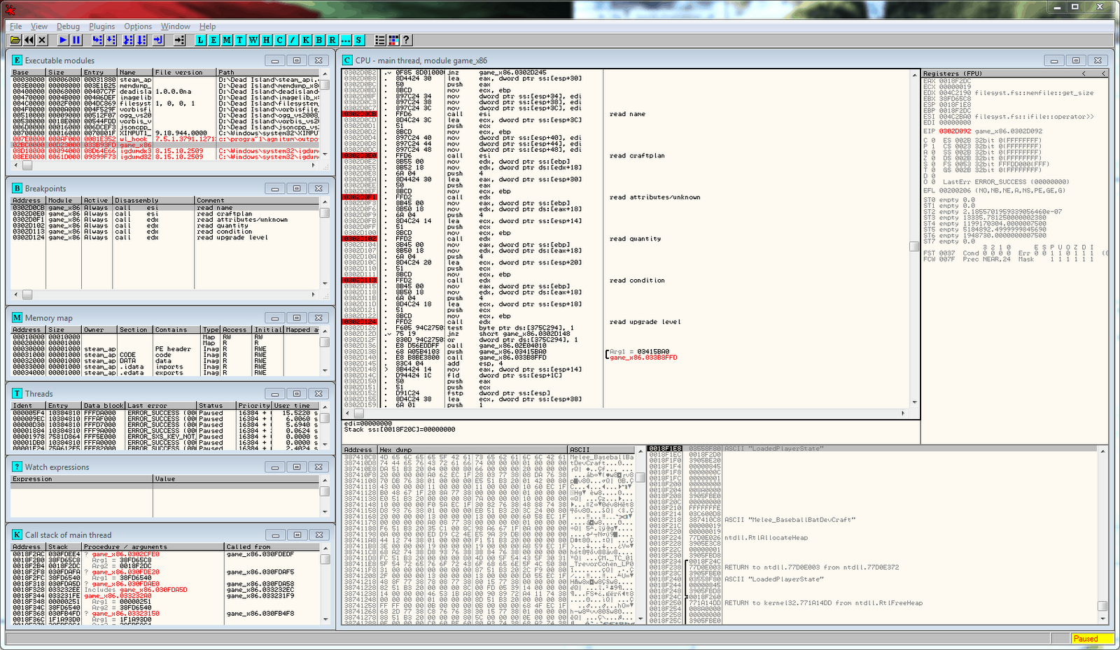 My Steam copy of the game freezes when I attach the debugger (OllyDbg), so I am using "the other" copy which always just works.