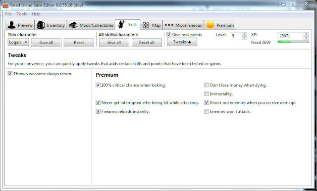 - Lifted skill point limits a bit for the free edition. The original limit was 1 to 3, which is the same as in-game. Now, it's original max ± 7. That means -8 to +8 (1-rank skills) or -10 to +10 (3-rank skills). That should be enough to manually make up some of the premium tweaks with a little effort. :)