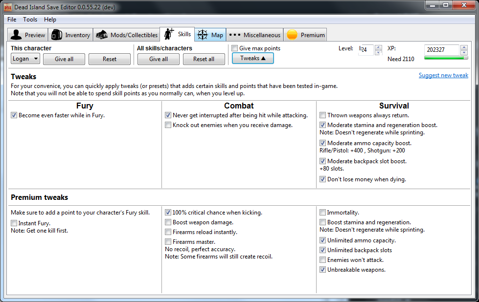 - Made skill tweaks free: